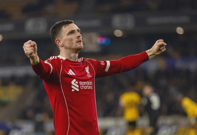 本场最耀眼的光芒,无疑属于31岁的罗伯逊。这个本赛季被22岁小将凯尔凯兹挤到替补席的左后卫,用一传一射的完美表现,上演了教科书级别的“替补逆袭”。第51分钟,他接琼斯做球,弧顶冷静调整后远射破门,打破僵局;两分钟后,他插上套边送出精准低平传中,助攻萨拉赫包抄得分,用两场比赛的高光,直接当选队内最佳。