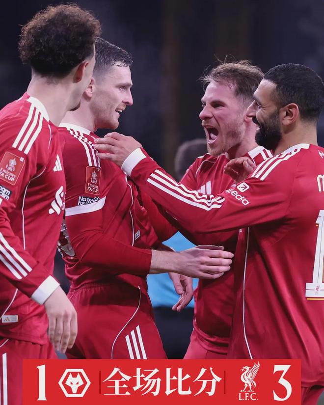 莫利纽球场的终场哨响,利物浦3-1完胜狼队,用一场酣畅复仇锁定足总杯八强席位。罗伯逊传射建功,萨拉赫、琼斯先后破门,67%控球率、20脚射门的绝对压制,看似是一场救赎之战,却难掩红军内部的暗流涌动。这场胜利,究竟是绝境反弹的起点,还是掩盖矛盾的假象?罗伯逊的逆袭、斯洛特的争议、红军的未来,都藏在这场比分背后。