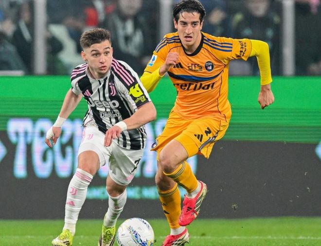尤文图斯排出3421阵型。乔纳森-戴维顶在最前面。孔塞桑和伊尔迪兹在他身后。麦肯尼、洛卡特利、凯夫伦-图拉姆和安德烈亚-坎比亚索4中场联袂出击。卡卢卢、加蒂和布雷默3后卫首发出战。佩林担任首发门将。博加、奥蓬达、米雷蒂和科斯蒂奇坐在替补席待命。