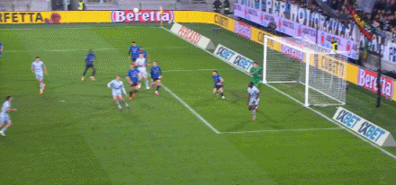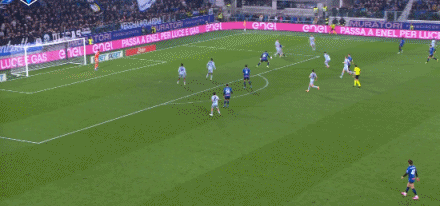 第75分钟,扎莱夫斯基传中,斯卡马卡扳回一球,亚特兰大1-2乌迪内斯