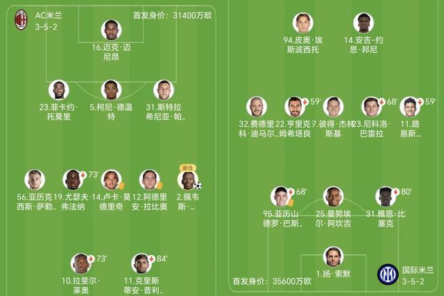 两队尽遣主力,米兰这边阿莱格里派出莱奥和普利希奇双前锋,齐沃则给国米派上皮奥-埃斯波西托和博尼。