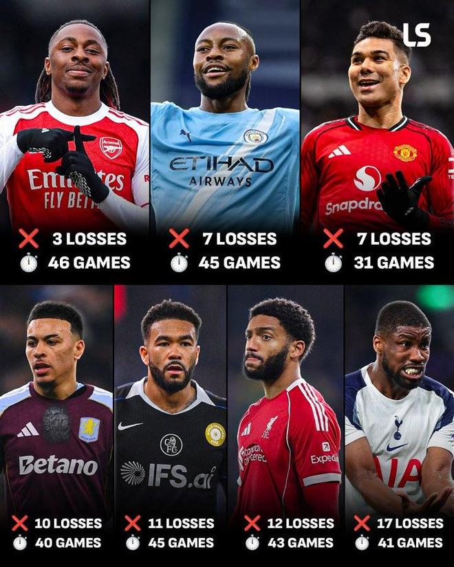 据统计,阿森纳是本赛季所有英超俱乐部中,各项赛事输球次数最少的球队,在已进行的46场比赛中仅输掉3场。同时,他们也是本赛季参加比赛场次最多的球队。其他英超强队的输球场次分别为:曼城45场7负、曼联31场7负、维拉40场10负、切尔西45场11负的。