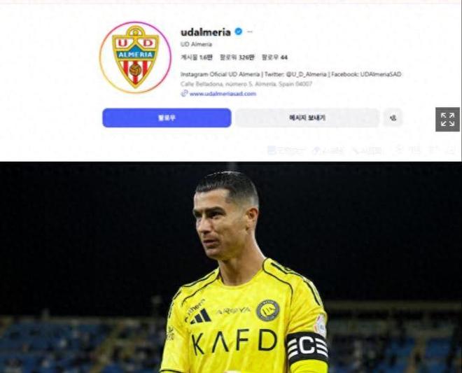 C罗入股阿尔梅里亚引爆社媒:涨粉300万,跻身西班牙球队流量前五