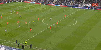 74’哈维·巴恩斯射门中柱,若埃林通越位位置补射破门,进球无效。