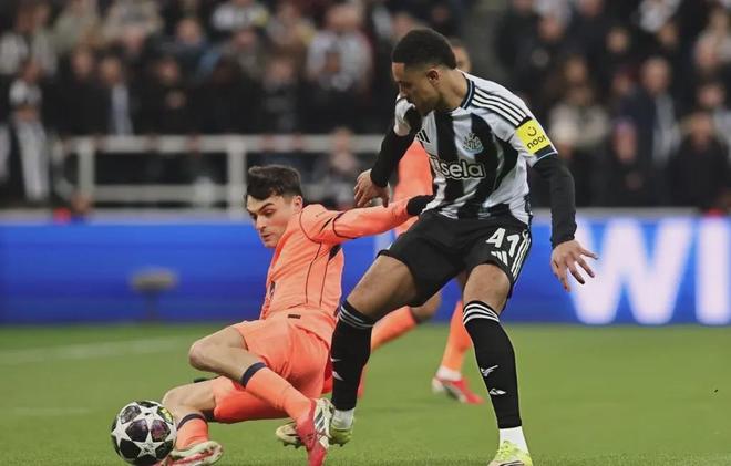 这是亚马尔职业生涯首次在欧冠赛场没有完成哪怕一次过人。纽卡斯尔联用近乎野蛮的肌肉绞杀,彻底锁死了这位天才边锋。托纳利、乔林顿像两块胶皮糖一样粘在巴萨中场,让习惯了“遛狗”的拉菲尼亚和莱万彻底迷失。拉菲尼亚全场1次射门0射正,莱万在禁区内甚至拿不到球。