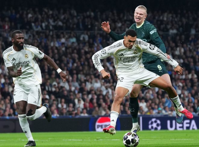 第59分钟,吕迪格门前解围,皮球稍稍偏出左侧立柱,差一点乌龙球。3分钟后,维尼修斯在禁区左侧小角度低射。门将把球没收。随后,居莱尔的远射踢偏了。第66分钟,维尼修斯带球内切兜射远角,踢偏了。7分钟后,赖因德斯外围远射,踢高了。随后,奥赖利近距离捅射,库尔图瓦神级反应把球挡出。最终,皇马3-0横扫曼城。瓜迪奥拉耻辱一战,曼城濒临淘汰。