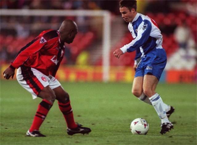 早年在切尔西出道,后来为了追求冠军,转会去了当时财大气粗的布莱克本队。那会儿的布莱克本可了不得,老板有钱任性,连大名鼎鼎的阿兰·希勒都给挖来了,后来又凑齐了萨顿、巴蒂(不是阿根廷那个“战神”,是英格兰本土国脚大卫·巴蒂)等一众猛男,战斗力爆表。在1994-95赛季,他们硬是从弗格森的曼联手里抢下了一个英超冠军,风头一时无两。