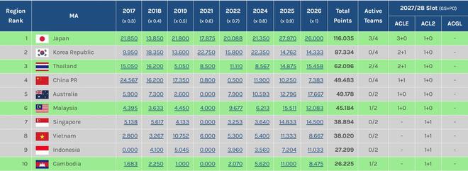 本赛季东亚区亚冠技术积分排名