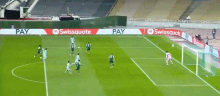 第30分钟,鲁伊瓦尔超远距离吊射,皮球稍稍高出横梁