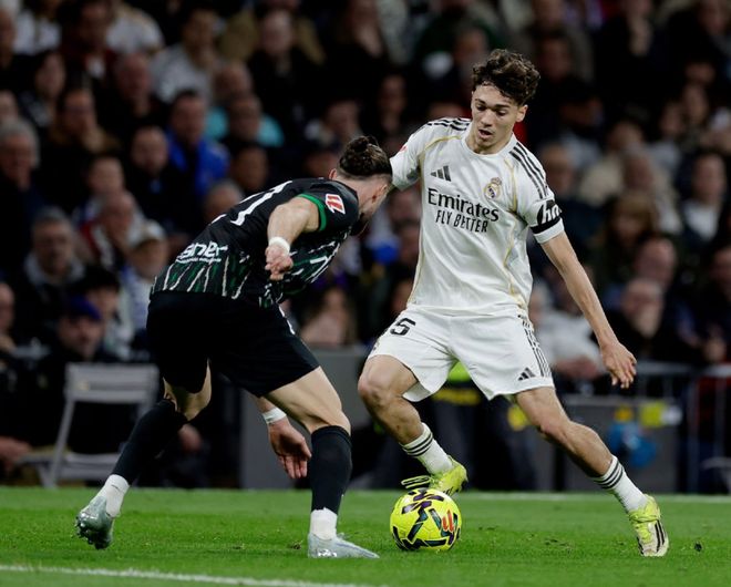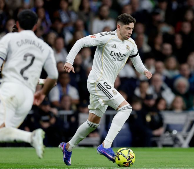 面对赛季首回合交锋,2-2逼平自己的升班马,皇马此役在伯纳乌也派出了最强阵容应战,在442的阵型中,让库尔图瓦镇守龙门,加西亚、赫伊森、吕迪格和卡瓦哈尔构筑后防,卡马文加、琼阿梅尼、皮塔奇和巴尔韦德坐镇中场,双箭头则是维尼修斯搭档迪亚斯。