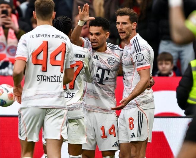 几乎同一时间的拜仁同样翻车;客战勒沃库森,第6分钟阿莱士-加西亚前插劲射击中塔之后折射入网;第42分钟,雅克松飞铲泰里耶脚踝,经VAR确认后被直红罚下,拜仁少一人作战。不过在少打一人下,第69分钟,奥利塞精准斜塞,迪亚斯冷静推远角破门将比分扳平;然而第84分钟,凯恩回撤挑传,迪亚斯启动形成单刀与出击的门将接触倒地,主裁判却吹罚了迪亚斯假摔,后者也因为两黄变一红被罚出场。面对这样的判罚,场下的孔帕尼也罕见的在场下暴怒表达不满;值得一提的是,赛后裁判接受采访时候却表示再重来一次的话,不会出示第二张黄牌。